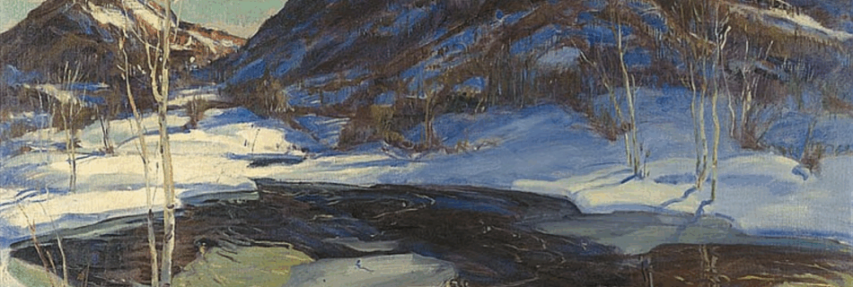 A luminous winter landscape, First Thaw captures the fleeting moment when snow yields to sunlight, and whispers of spring stir beneath their frozen blanket. Jonas Lie renders the transition with a musician’s rhythm and a philosopher’s calm, transforming paint into melody. The composition’s harmony of blues, whites and ochres evokes the thaw of both nature …