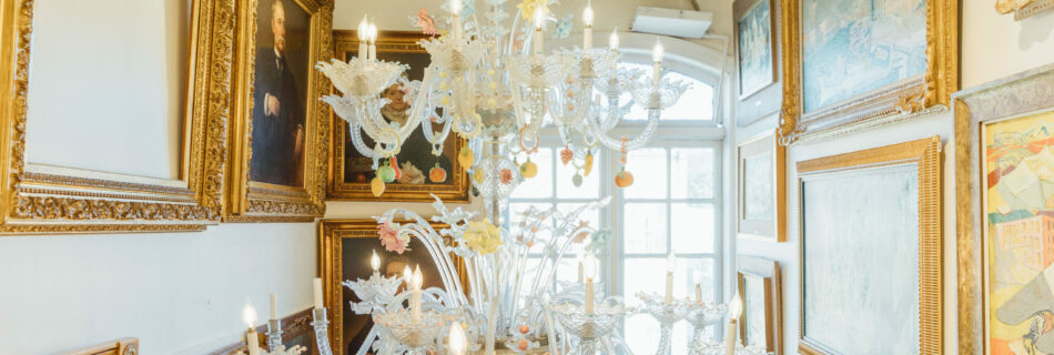 This magnificent Murano glass chandelier is a centerpiece of L’Enfant Gallery, admired for its extraordinary craftsmanship and luminous presence. Created in the tradition of Venetian glassmaking—an art perfected over nearly a thousand years—the chandelier features hand-blown arms, floral bobeches, trailing vines, and delicate fruits and blossoms fashioned in multicolored glass. Each component was individually shaped, …