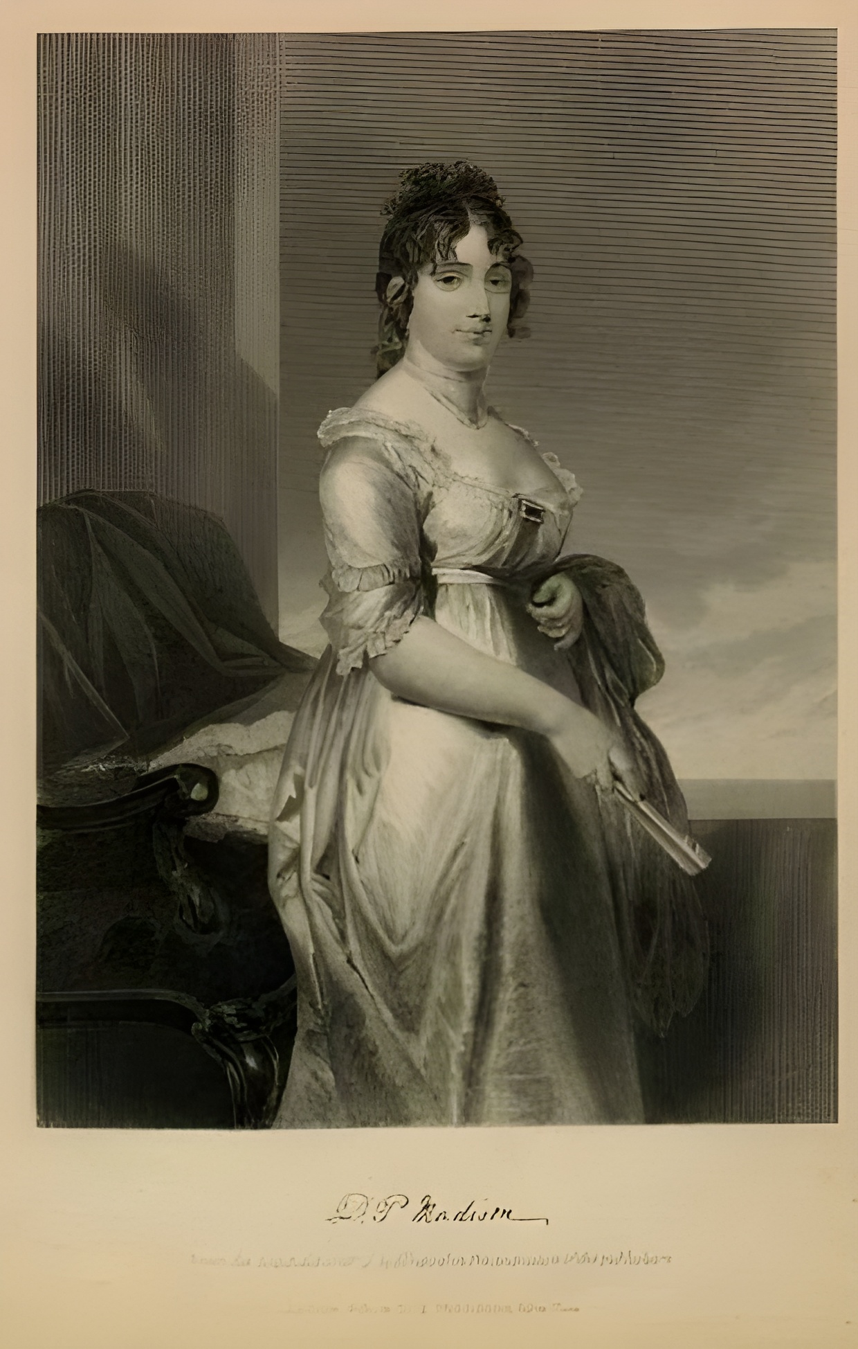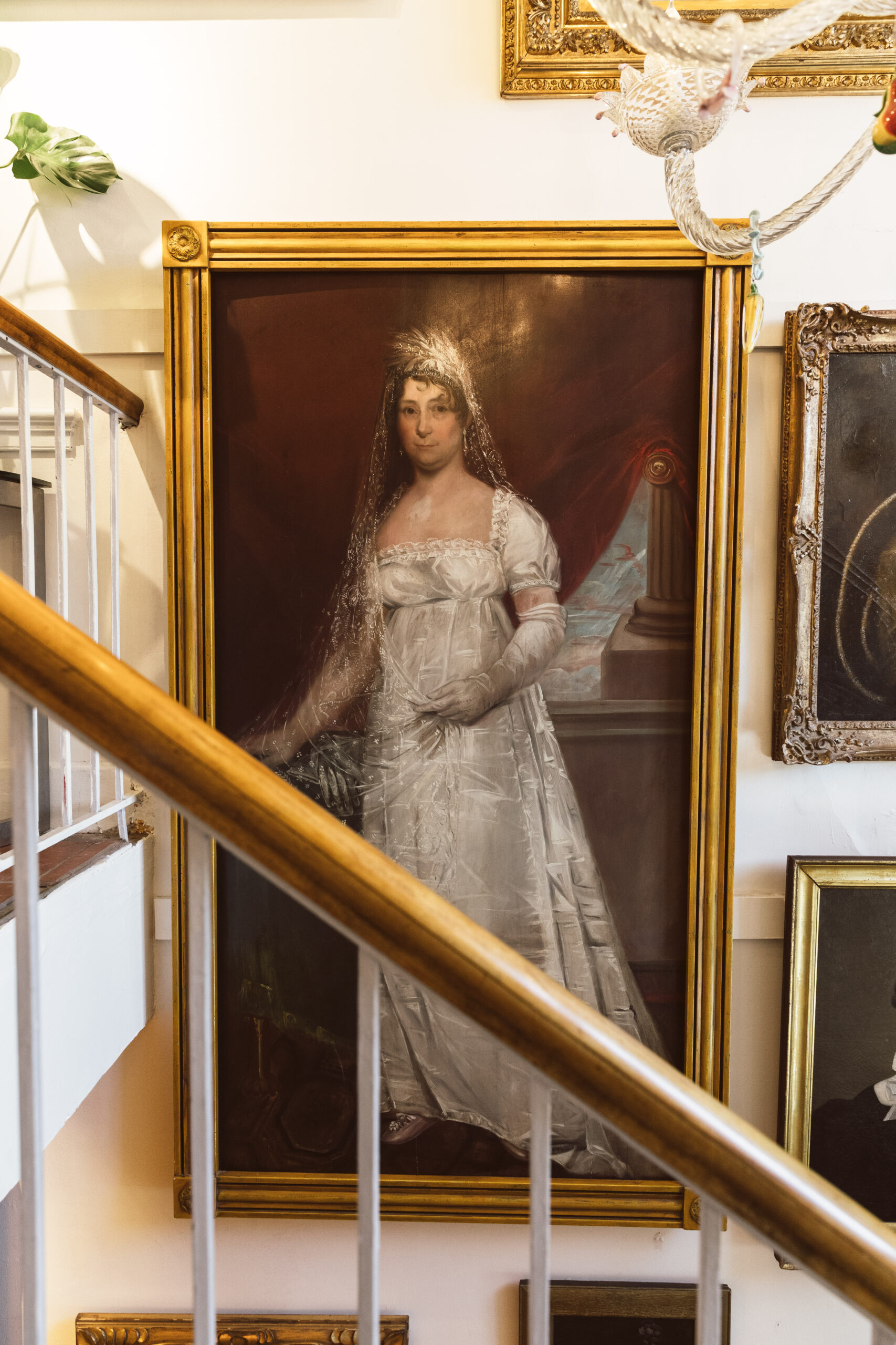 This unsigned oil portrait of Dolley Madison, attributed to John Wesley Jarvis, captures not just the likeness of America’s fourth First Lady, but the resilience and elegance that defined her legacy. Painted circa 1820, the work’s soft lighting and rich tonal palette project Madison’s quiet strength, her composure framed in gold leaf grandeur. The portrait’s journey mirrors the life of its subject: praised, exiled, rediscovered. Once admired as a national treasure, it was later removed from the White House after its authenticity was disputed, only to resurface decades later through the hands of art collector Richard Tetlie. Today, she watches over visitors from the walls of L’Enfant Gallery - a symbol of endurance, identity, and the enduring mystery of America’s cultural memory.