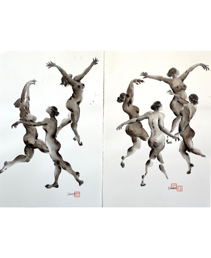 This piece, titled Nude Gesture Studies, is by Huang Xiaopo and dates to 2013, reflecting a Figural style. It is executed in Chinese Xuan paper and mixed ink, showcasing the use of materials and technique. The dimensions and framing details are not specified, leaving its scale open to interpretation. The work is signed by the artist, and provenance records indicate that Xiaopo visited L’Enfant Gallery in around 2015 with a large portfolio of these original drawings. We have not been successful in contacting the artist and do not know where she is based and if she is still painting.. Works in the figural tradition often emphasize technique and thematic expression, inviting viewers to engage with the subject and context. This summary is generated from catalog records and reviewed for accuracy in attribution, date, and materials.