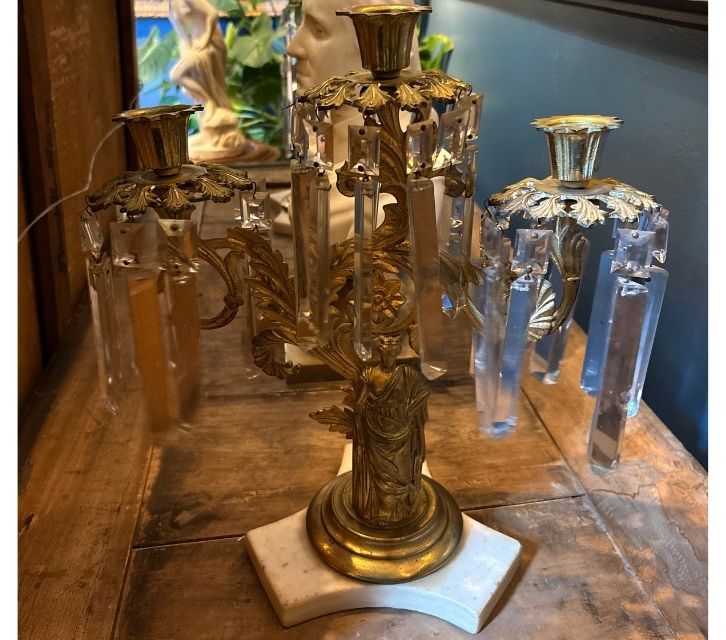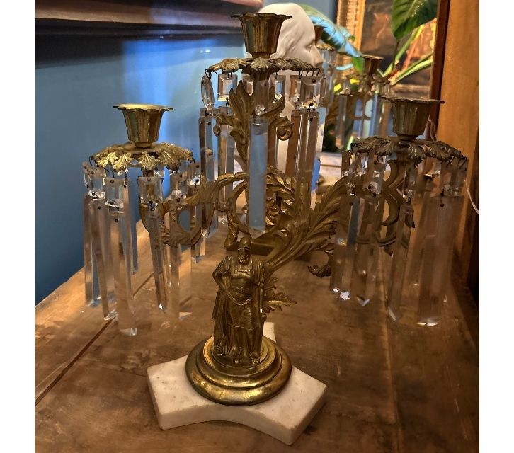 This piece, titled Pair of Girondels, is by Unknown and dates to c. 1830-1850, reflecting a Victorian, Neoclassical style. It is executed in Gilded bronze, Crystal, showcasing the use of materials and technique. The dimensions and framing details are not specified, leaving its scale open to interpretation. The work is unsigned. Works in the victorian, neoclassical tradition often emphasize technique and thematic expression, inviting viewers to engage with the subject and context. This summary is generated from catalog records and reviewed for accuracy in attribution, date, and materials. Its style and material qualities reflect the cultural context of the period, demonstrating craftsmanship and thematic depth.