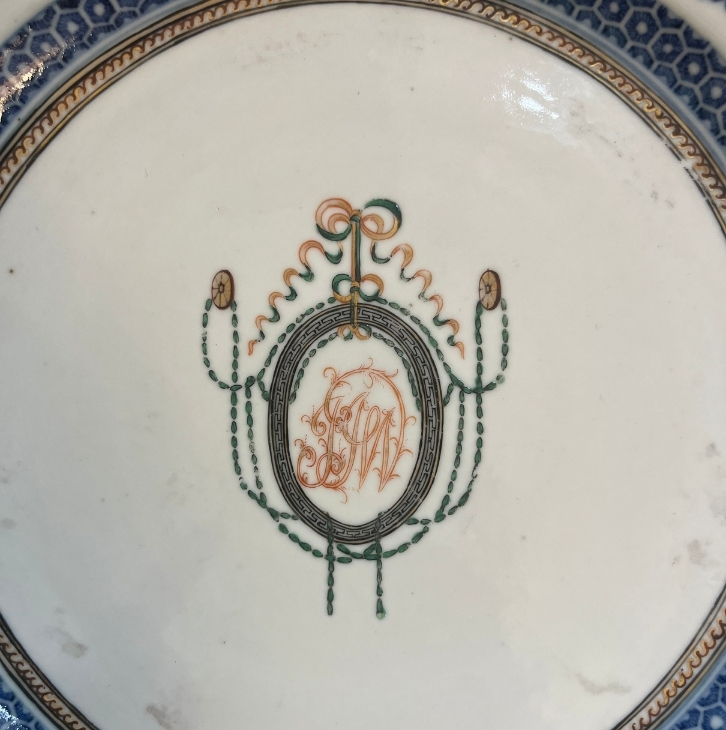 • Provenance: 000 plates came from China, 10, from the estate of Conseulo Vanderbilt. First set of Porcelain to come from China. In 1786, he could have bestowed small amounts of the porcelain set on officers as they visited him. He sold them to officers for a price depending on the value of the officers' donation to the club., to be called “The Society of The Cincinnati” As officers came to Mount Vernon, Washington then distributed the plates. Peter purchased around 250 pieces from this set in1976