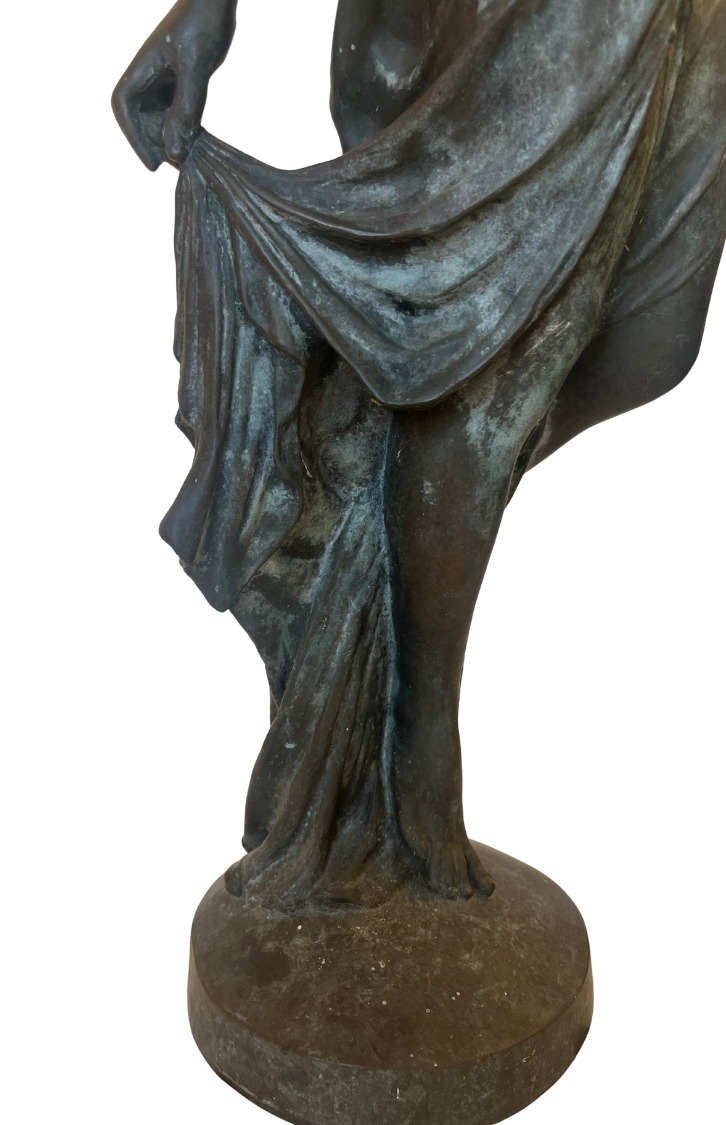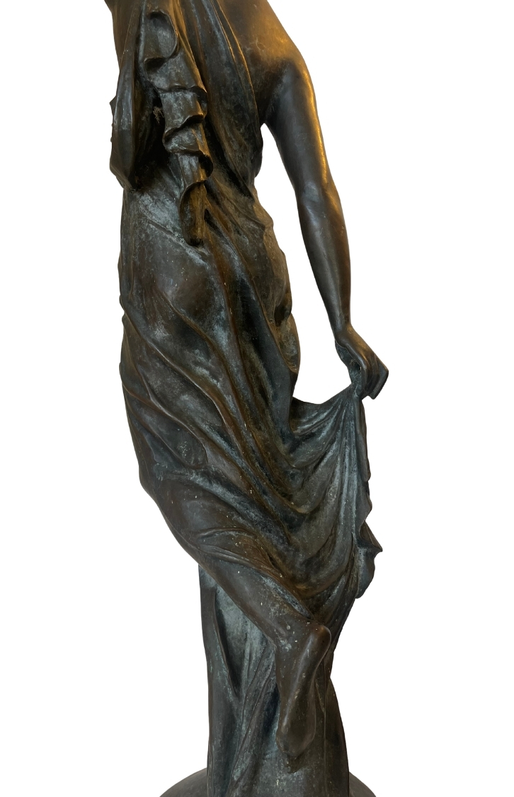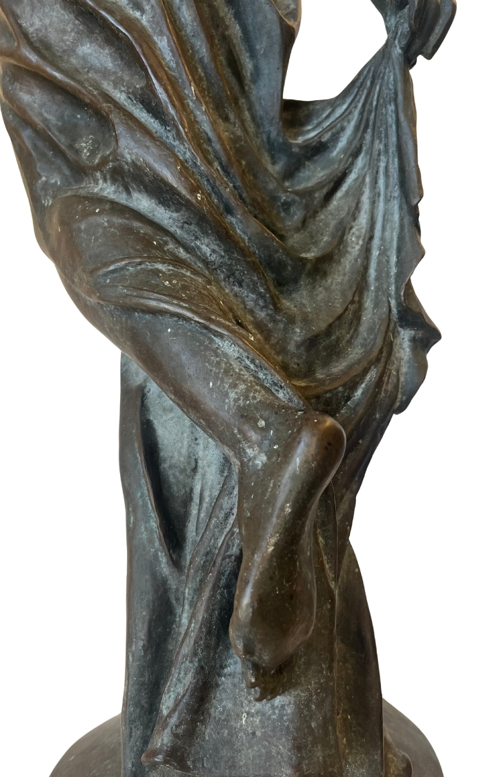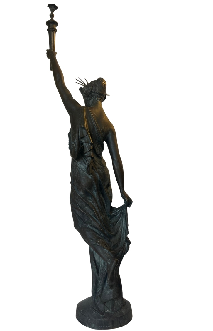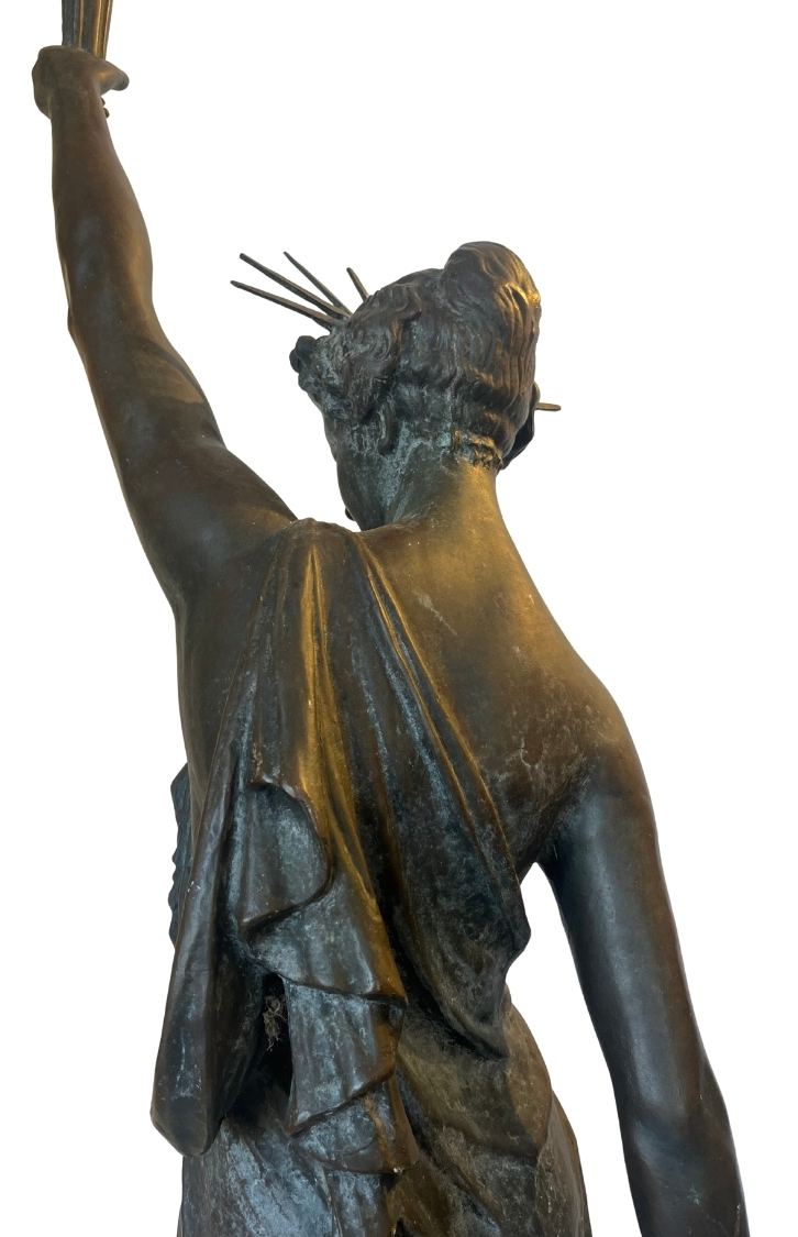 This piece, titled Small Bronze Sculpture of Stature of Liberty, is by Frederic Auguste Bartholdi and dates to Cast in 1873; Dedicated 1876, reflecting a Historical style. It is executed in Bronze, showcasing the use of materials and technique. The dimensions and framing details are not specified, leaving its scale open to interpretation. The work is signed by the artist. Works in the historical tradition often emphasize technique and thematic expression, inviting viewers to engage with the subject and context. This summary is generated from catalog records and reviewed for accuracy in attribution, date, and materials. Its style and material qualities reflect the cultural context of the period, demonstrating craftsmanship and thematic depth.