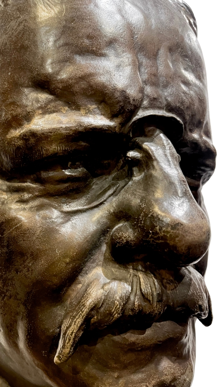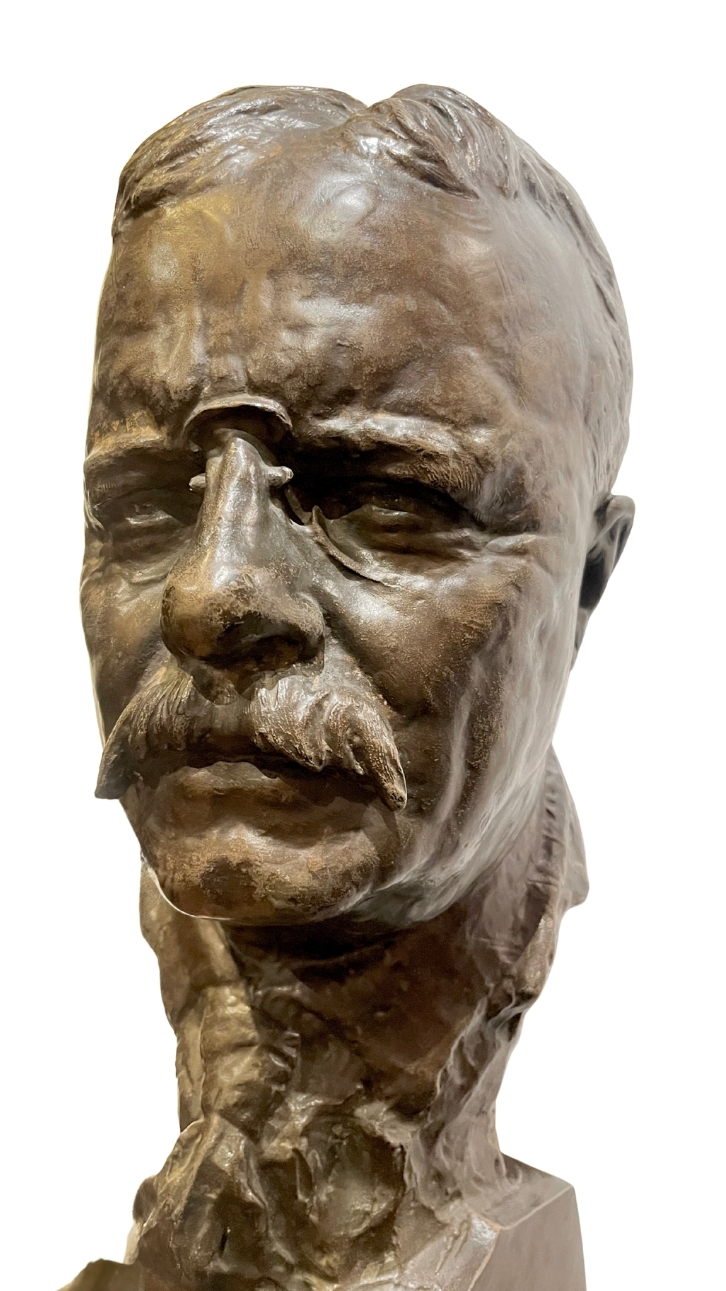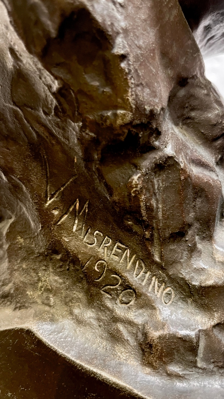 This piece, titled Teddy Roosevelt Bust, is by Vincenzo Miserendino and dates to 1920, reflecting a Historical, Portrait style. It is executed in Bronze, showcasing the use of materials and technique. The dimensions and framing details are not specified, leaving its scale open to interpretation. The work is signed by the artist, and provenance records indicate that Purchased from a private collector, who specializes in objects, paintings and bronzes of President Theodore Roosevelt.. Works in the historical, portrait tradition often emphasize technique and thematic expression, inviting viewers to engage with the subject and context. This summary is generated from catalog records and reviewed for accuracy in attribution, date, and materials.